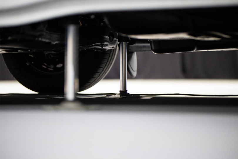 Dank seiner speziellen Hydraulik bietet der AK Broadcast 7.5 auch auf unebenen Flächen einen stabilen und geraden Stand. Vier hydraulische Stempel ermöglichen ein automatisches Nivellieren, das bequem über die Fahrerkabine gesteuert werden kann.