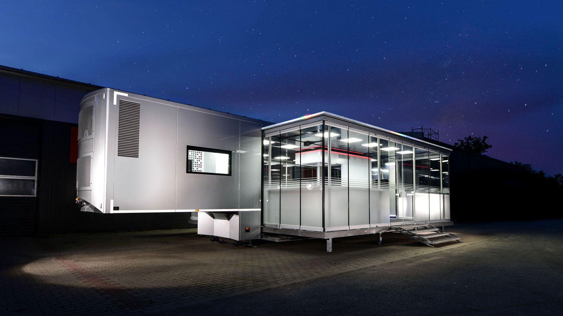 Der AK Glass Cube überzeugt und begeistert in erster Linie durch seine Panoramaverglasung. Dadurch ist er für besonders kreative Produktpräsentationen bestens geeignet. Dank der zwei Fold-outs können im AK Glass Cube bis zu 72m² Fläche geschaffen werden, entweder als ein Raum oder in mehrere Räume (z.B. separate Meetingräume oder Backoffices) aufgeteilt. Bei Nutzung des AK Glass Cube im Ausland konzipieren wir Ihr Sonderfahrzeug so, dass es allen gesetzlichen Anforderungen in verschiedenen Ländern entspricht.