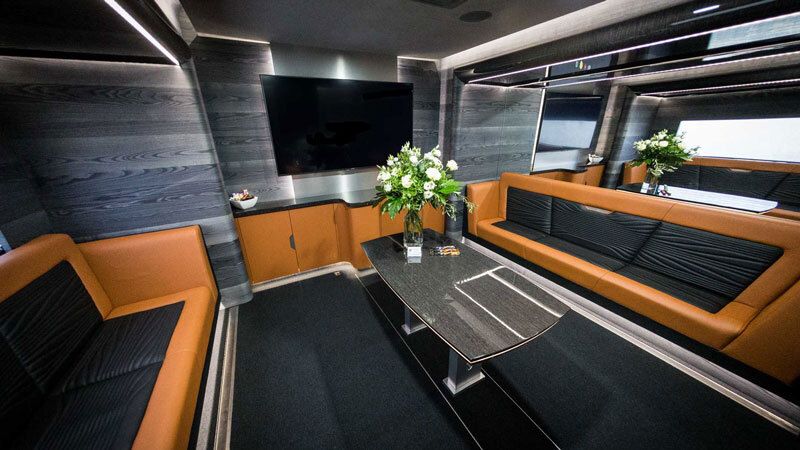 Der AK Race Tourer Triple Size ist das größte Sonderfahrzeug für Rennteams, mit insgesamt drei Slide-outs und damit zwei separaten Räumen, die von außen zugänglich sind. Ob Office, VIP-Lounge oder Schlafmöglichkeit: Dank der absoluten Freiheit bei der Ausstattung des Tourers gestalten Sie Ihr Fahrzeug nach Ihren Anforderungen und denen Ihres Teams.